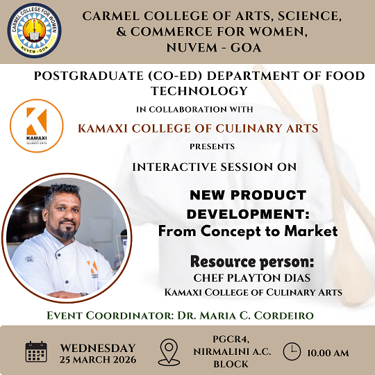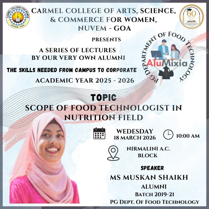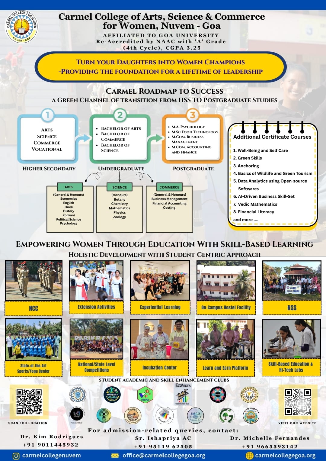I feel privileged and proud to extend a cordial and loving welcome to you into the portal of Carmel College of Arts, Science and Commerce for Women for the academic year 2025-2026, Goa’s first institute of Higher Learning exclusively for Women at Under Graduate level and Co-ed at Post Graduate Level.